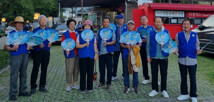 바르게살기운동 거창군협의회, 거창국제연극제 단체관람 및 부채 나눔 활동관람객들에게 부채를 나누며 연극제의 성공 기원!김철상 기자 / |