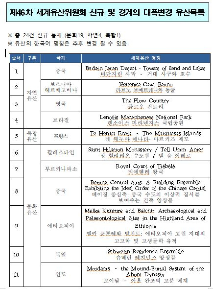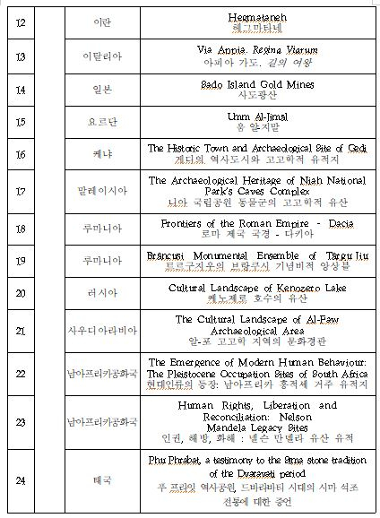 - 세계유산 24건 신규 등재 … 대한민국은 위원국 자격으로 역할 수행