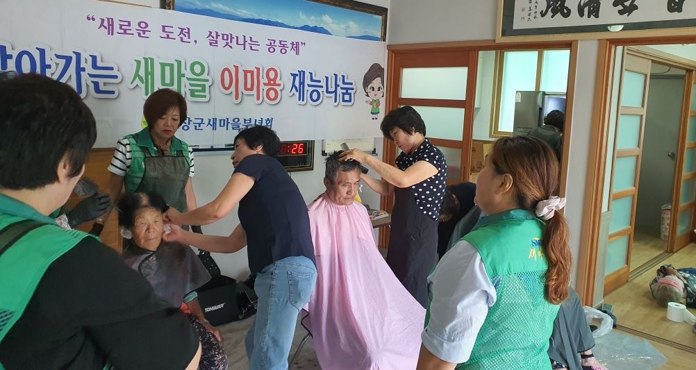 새마을부녀회, 가조면 상수월마을 이·미용봉사 실시경로당에서 염색 및 커트, 드라이 등을 실시해 어르신들이 단정하고 밝은 모습정호 기자 / |