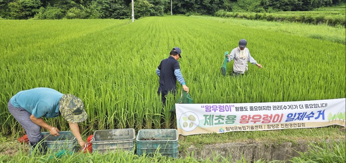 함양군, 논 제초용 ‘왕우렁이’ 일제 수거 기간 운영7월 말부터 집중 수거 진행정유근 기자 / |