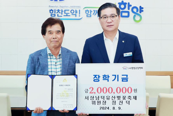 함양 정진덕 서상 남덕유산 벚꽃축제 위원장 장학금 200만 원 기탁지역 청소년들에게 더 나은 교육 기회를 제공해 주는 든든한 디딤돌이 되기를 바람김도형 기자 / |