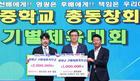 함양중학교 총동창회·52회 주관회기 고향사랑기부제 참여10일 총동창회 개회식서 고향사랑기부금 300만 원 기탁 고향 사랑 실천김철상 기자 / |
