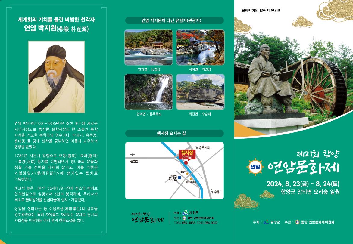 연암 실학의 성지 함양군에서 그의 업적을 재조명하고 지역주민과 관광객이 참여하여 자연과 인간, 예술이 조화를 이루는 ‘제21회 함양연암문화제’가 열린다.