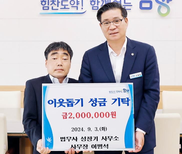 법무사 성창기 사무소 이병석 사무장, 함양군에 성금 200만원 기탁3일 풍족한 추석 명절을 위해 20세대에 전달 예정김주영 기자 / |