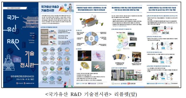 - 「2024 세계국가유산산업전」(9.10.~12. 경주화백센터)에서 ‘국가유산 연구개발 기술전시관’ 운영
