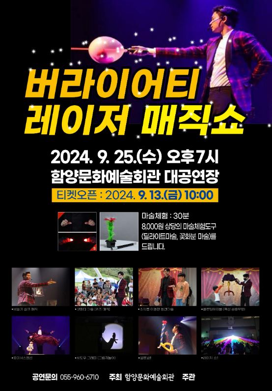 함양군, 문화가 있는날 ‘버라이어티 레이져 매직쇼’ 개최9월 문화가 있는 날은 ‘버라이어티 레이져 매직쇼’ 행복한 감동 선사정호 기자 / |