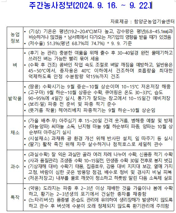 함양군 주간농사정보저기압의 영향을 받을 때가 있겠음한용택 기자 /