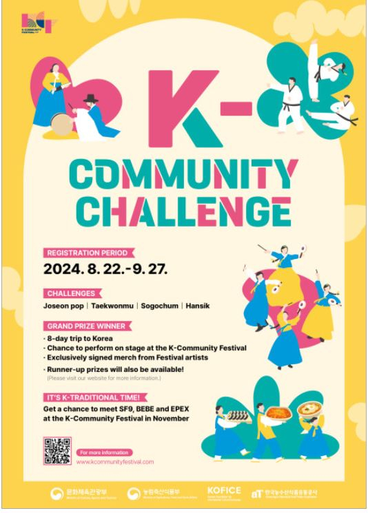 2024 ‘K-커뮤니티 챌린지’ 공식 누리집: https://www.kcommunityfestival.com/ 웹사이트: https://kofice.or.kr/ |