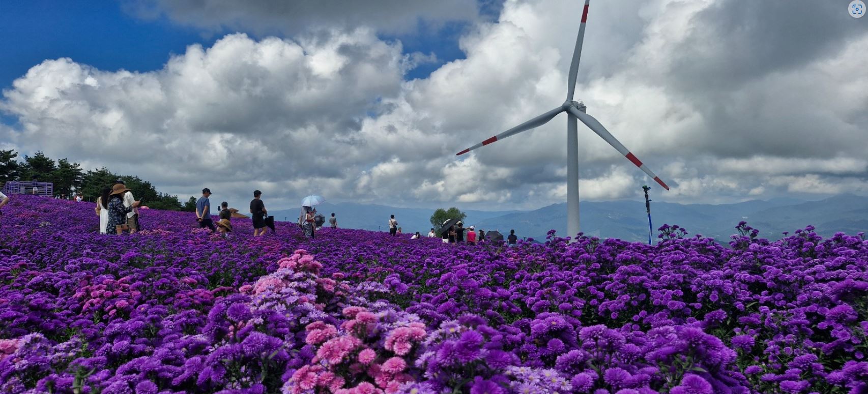 거창군 ‘제4회 감악산 꽃&별 여행’ 행사가 지난 9월 13일부터 시작돼 보라색 아스타 국화꽃을 보려는 많은 관광객이 추석 연휴 동안 문전성시를 이뤘다.