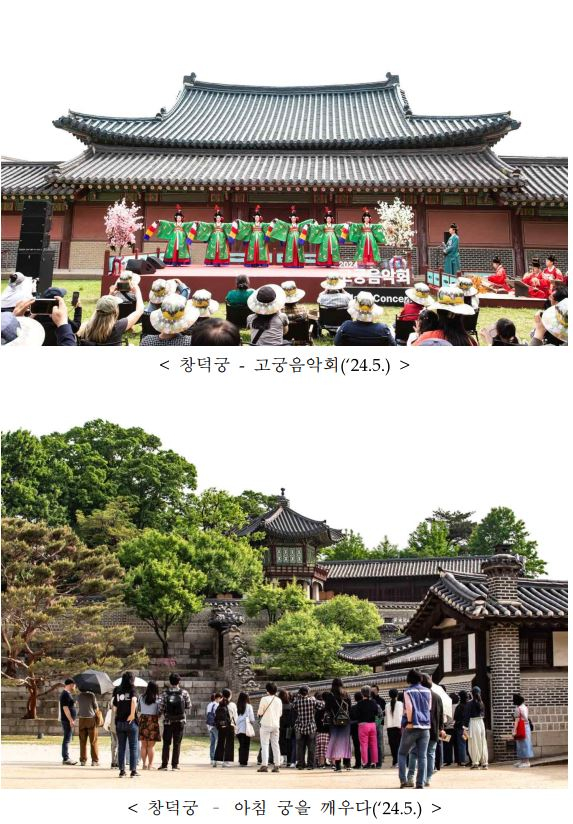국가유산청 궁능유적본부는 「궁중문화축전」을 통해 국내외의 다양한 관람객들이 우리 국가유산에 깃든 역사와 전통을 즐겁게 체험하고 깨닫는 기회가 되기를 기대하며, 앞으로도 참신한 궁능 활용 프로그램을 선보이는 적극행정을 지속해나갈 것이다. |