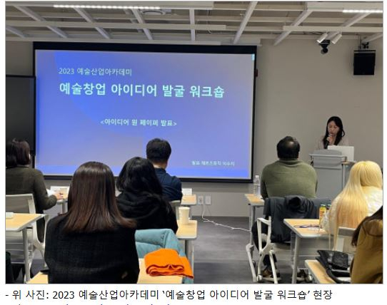 예술산업아카데미, 아이디어를 아이템으로 구체화할 미래 창업가 찾는다예술산업아카데미, ‘예술창업 아이디어 발굴 워크숍’ 20팀 내외 모집10월 7일(월) 오후 3시까지 온라인 수강 신청 김주영 기자 / |