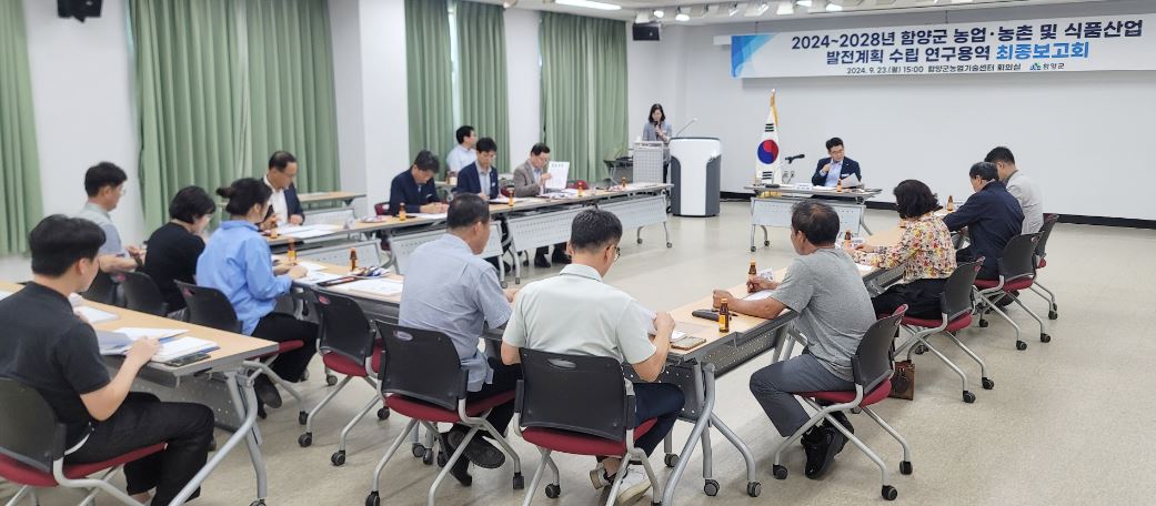 함양군 ‘농업·농촌 및 식품산업 발전계획 수립 연구용역’ 최종 보고회5대 부문별 16개 분야 146개 세부 사업, 함양군 농업·농촌 중장기 비전과 전략 수립정호 기자 / |