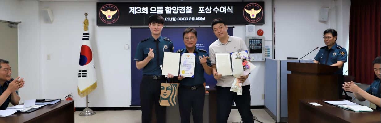 함양경찰서, 제3회 으뜸함양경찰 선정 포상- 이지훈 경위·양재혁 순경 등 2명 선정, 내부 사기진작에 기여 -정유근 기자 / |