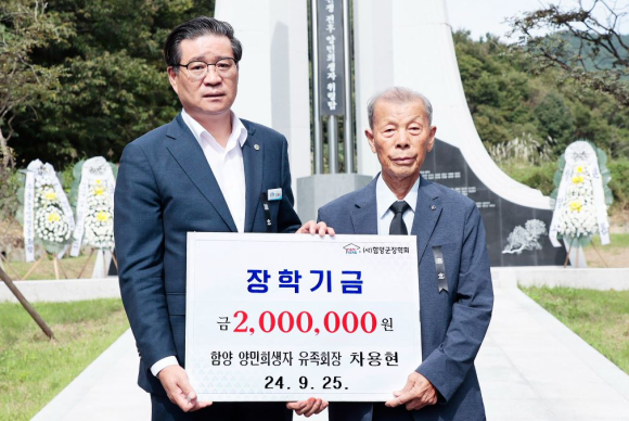 | 진병영 함양군수는 추념사를 통해 “한국전쟁 전후 억울한 누명을 쓰고 희생된 분들을 오늘날까지 추모할 수 있기까지는 유족 여러분들의 간절함과 노력 덕분”이라며 “함양군에서는 유족들의 상처와 아픔이 잊혀지지 않도록 더욱 노력하겠다”고 말했다. 차용현 희생자 유족회장은 “당시 억울하게 희생당한 도북마을 주민 32구의 유골을 찾아 합동묘를 만들고, 181위 위령탑을 세워 이들의 넋을 기릴 수 있도록 추모공원을 조성하여 주신 함양군에 진심으로 감사드린다”는 뜻을 전하며, 희생자들을 위해 직접 지은 추모헌시를 낭독했다. 이어 차용현 회장은 “많은 금액은 아니지만 34년간 유족회를 위해 힘써주신 함양군 행정에 보답하고 싶다”라며 (사)함양군장학회에 장학금 200만 원을 기탁했다. 함양군은 억울하게 희생된 영령들과 그 유족들을 위로하기 위해 2021년 수동면 도북리 764-1번지 일원에 한국전쟁 전후 함양양민희생자 추모공원을 조성했다. |