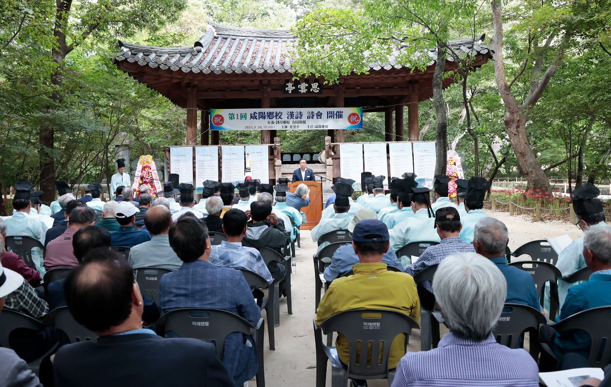 함양향교 제1회 한시 시회 개최26일 상림공원 사운정에서 한시·시조창·현대시 등 낭송한용택 기자 / |