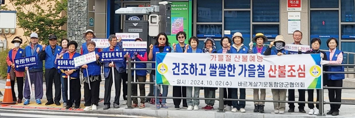 바르게살기운동 함양군협의회, 가을철 산불 예방 캠페인4일 동문사거리에서 ‘가을철 산불 예방 및 교통 안전’ 주제 캠페인 전개한용택 기자 / |