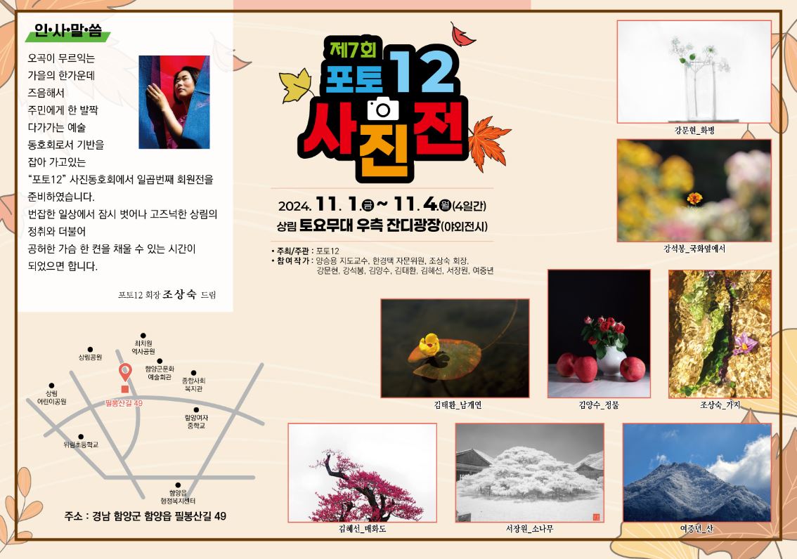 제7회 포토12 사진전, 11월 1일부터 4일간 전시주민들에게 한 발 더 다가가는 예술 동호회로서 개성 넘치는 사진 선보일 예정이광훈 기자 / |