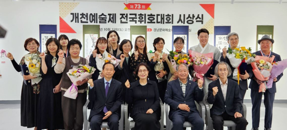함양문화원 문화학교 강봉주 수강생 제73회 개천예술제 전국휘호대회 대상 수상대상 수상자에게는 문화체육관광부 장관 트로피와 300만원의 상금이 수여이광훈 기자 / |