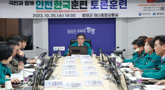 함양군, 2024년 재난대응 안전한국훈련 실시31일 오후 3시 지하주차장 전기차 화재 발생에 따른 다중밀집시설 대형화재 대응 훈련김철상 기자 / |