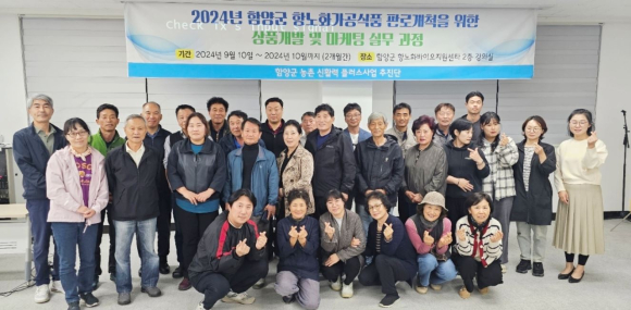 함양군과 함양군 농촌 신활력플러스 사업단은 지난 10월 24일 함양군 항노화바이오 지원센터에서 항노화가공식품 상품개발 및 마케팅 실무과정 수료식을 개최했다.