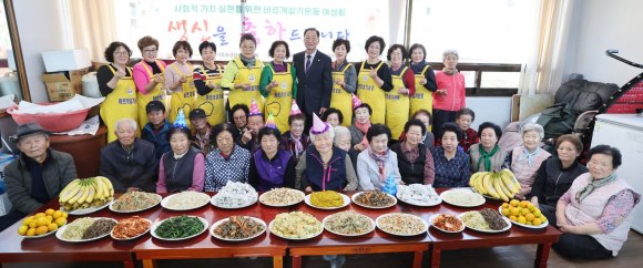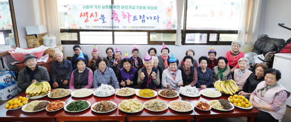 바르게살기 함양군협의회 여성봉사회, 어르신 생신상 차려드리기31일 함양읍 용평4리 노모당에서 손수 만든 생신상 대접으로 어르신 건강 기원정호 기자 / |
