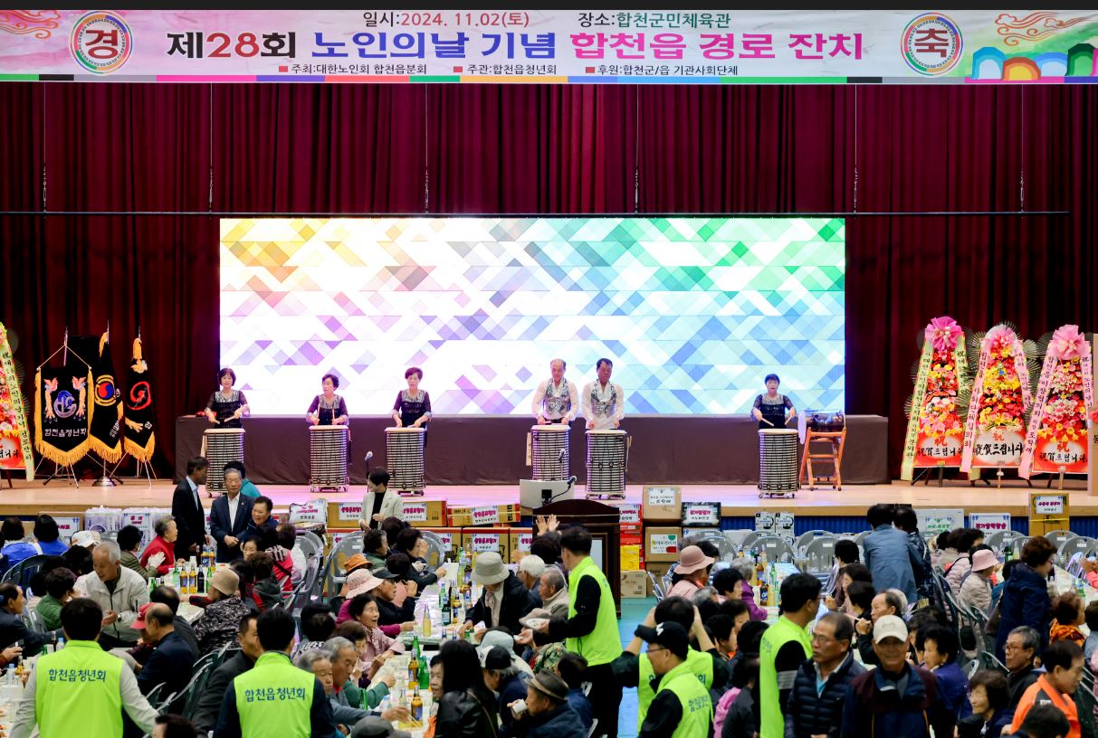 합천읍(읍장 오미화)에서는 지난 2일, 합천읍 노인회분회(분회장 김경도)가 주최하고 합천읍 청년회(회장 곽대원)가 주관하며 합천군과 합천읍 기관·사회단체가 후원하는 제28회 노인의 날 기념식 및 경로잔치를 합천체육관에서 개최했다.