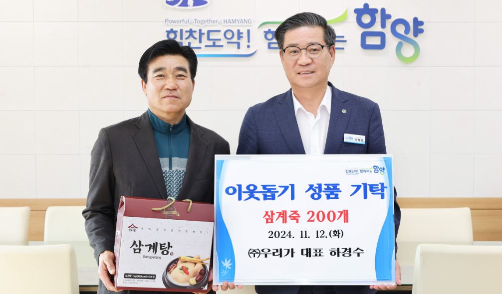 함양 ㈜우리가, 삼계죽 200개 기탁삼계죽은 각 읍·면사무소의 추천을 받아 지역 내 어려운 이웃들에게 전달될 예정김윤국 기자 / |