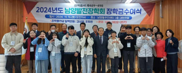 2024년 남양발전장학회 2024년 장학금 및 장학증서 수여식 개최초등학생 3명, 중학생 2명, 고등학생 3명, 대학생 2명 등 10명의 학생에게 총 600만 원의 장학증서를 수여이광훈 기자 / |