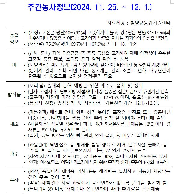 함양군 주간농사정보(저수율) 75.2%(평년 69.7%의 107.9%) * 11. 18. 기준정유근 기자 /