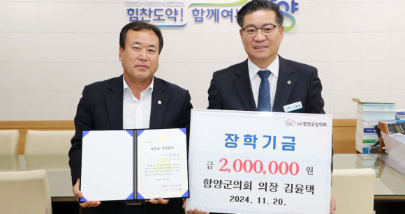 함양군의회 김윤택 의장 장학금 200만 원 기탁NULL김도형 기자 / |