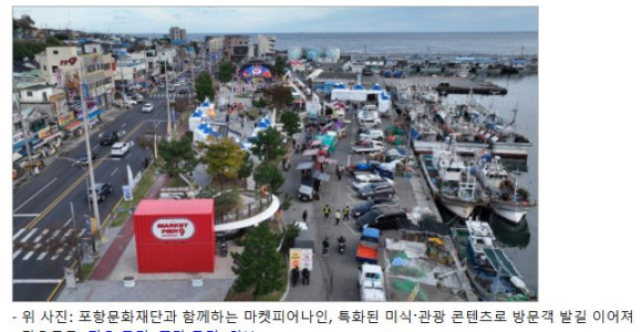 포항문화재단과 함께하는 마켓피어나인미식·관광 체험에 만족도 높아