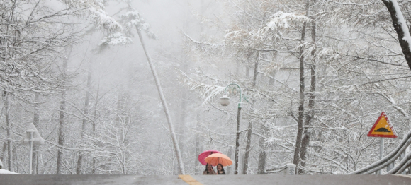 ‘설국’으로 변한 지리산 함양함양대봉산휴양밸리등 뒤 덮은 설경김주영 기자 /