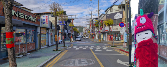 은행나무 가로수 예술작품으로의 재탄생-가로수 그래피티 니팅으로 겨울철 따뜻한 거리를 만들다.-김주영 기자 / |