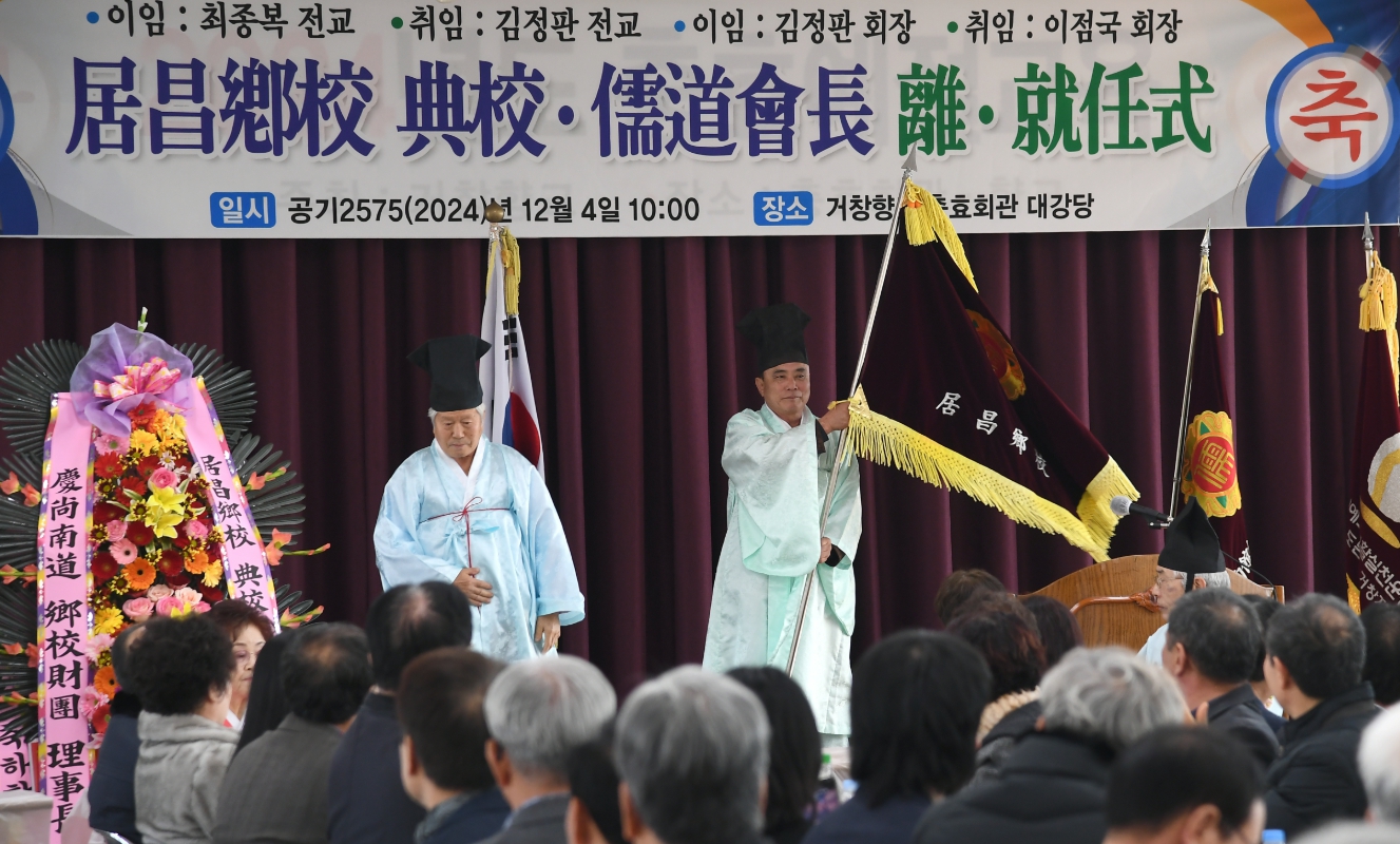 이날 이·취임식에서는 제28대 최종복 거창향교 전교와 제21대 김정판 성균관유도회 거창지부회장의 임기를 마무리하고, 제29대 김정판 전교와 제22대 이점국 지부회장이 새로이 취임했다.