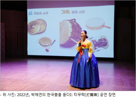 12월 19일 저녁 7시, 서울시 강남구 민속극장 풍류에서 개최 한국춤 대중화를 위한 ‘박혜연의 한국춤을 듣다’ 시리즈의 두 번째 프로젝트 강연, 대담, 관객과의 대화를 통해 풀어내는 한국춤 이야기와 시연