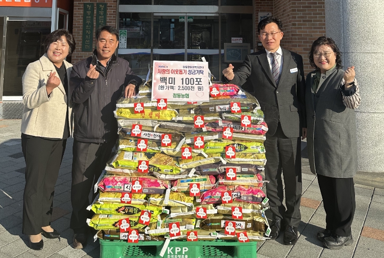 정동농협 KCC지점 하나로마트 개장 기념 백미 100포 기탁저소득 취약계층 등 기타 어려운 이웃에게 따뜻한 위로와 함께 전달할 예정정호 기자 / |