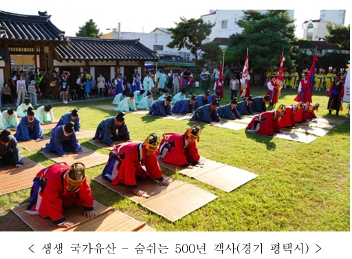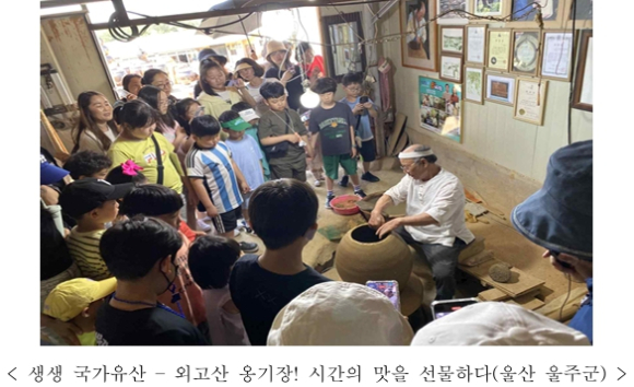 | 먼저, ‘생생 국가유산’ 부문에서는 ▲ 옹기를 활용한 콘텐츠를 일관성 있게 기획해 낸 「외고산 옹기장! 시간의 맛을 선물하다(울산 울주군)」, ▲ 지역의 문화자원과 그에 얽힌 이야기를 효과적으로 활용한 「숨쉬는 500년 객사(경기 평택시)」, ▲ 전통 장례문화를 소재로 차별화된 문화콘텐츠를 기획한 「방상씨와 떠나는 지구별 여행(강원 횡성군)」 등 7개 사업이 선정되었다.