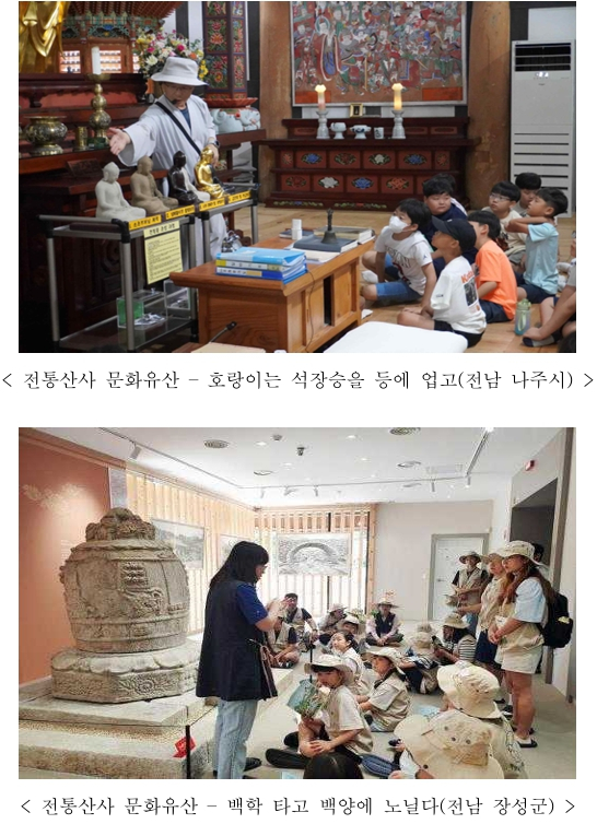 ‘전통산사 문화유산 활용’ 부문에서는 ▲ 무량사의 특색을 반영한 프로그램을 상시 운영한 「무량사에서 매월당의 지혜를 찾다(충남 부여군)」, ▲ 충실한 스토리텔링 및 굿즈를 개발한 나주 불회사의 「호랑이는 석장승을 등에 업고(전남 나주시)」, ▲ 백양사와 백학봉 명승의 가치를 다양한 각도에서 조명한 「백학 타고 백양에 노닐다(전남 장성군)」의 3개 사업이 선정되었다.