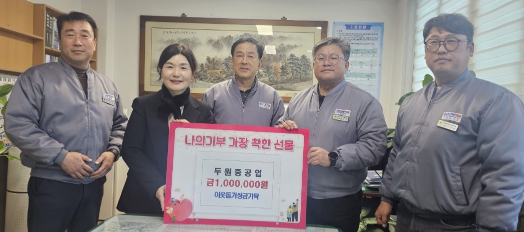 ㈜두원중공업 이웃돕기 성금 100만 원 기탁지역사회 어려운 이웃들을 위해 쓰일 예정정호 기자 / |