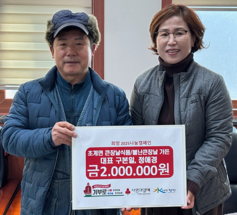 초계면 큰장날식품 및 불난큰장날가든구본일, 정애경 대표 이웃돕기성금 200만원 기탁김도형 기자 / |
