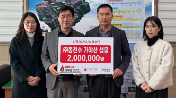 합천군 묘산면 ㈜동천수 가야산샘물, 이웃돕기 성금 기탁도움이 필요한 분들에게 소중히 전달김도형 기자 / |
