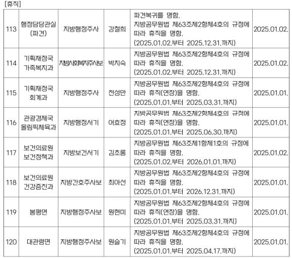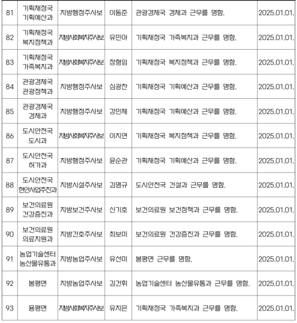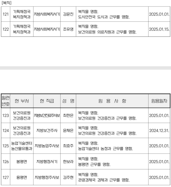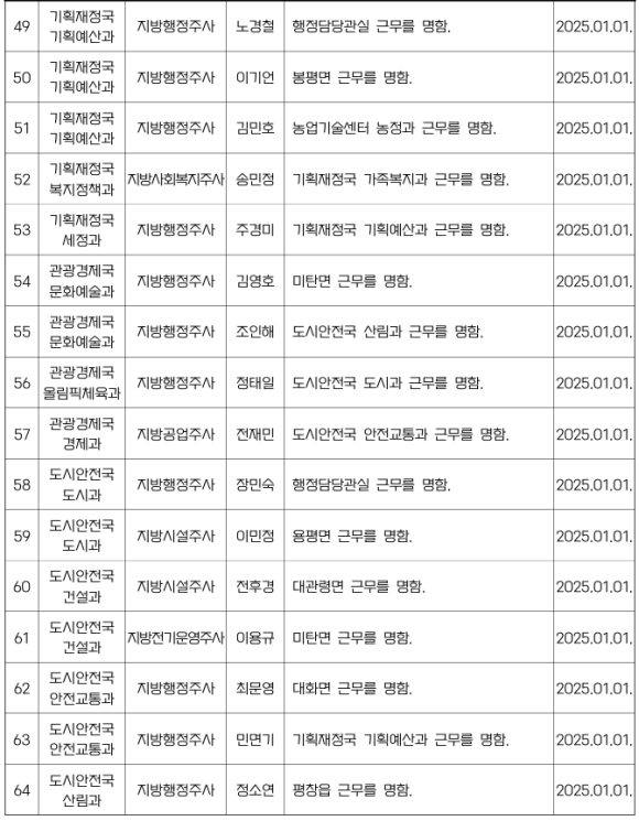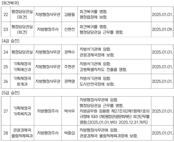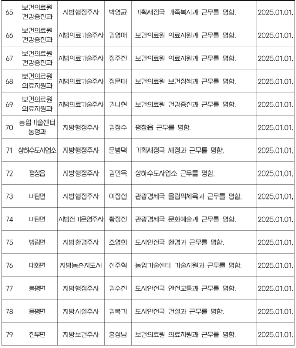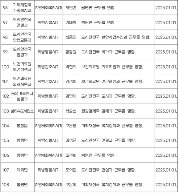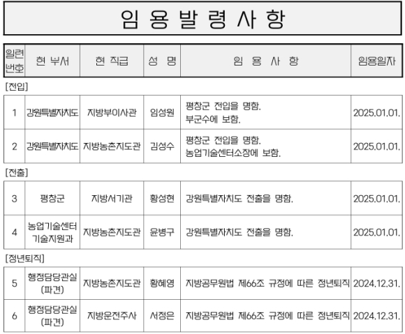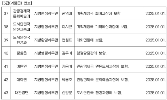 평창군 인사발령NULL이광훈 기자 / |