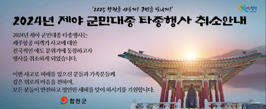합천군, 2024년 제야 군민대종 타종행사 취소NULL김도형 기자 / |