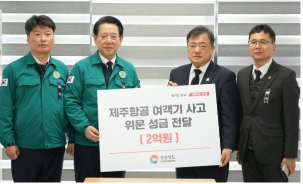 경남도, 제주항공 여객기 사고 관련 성금 2억 원 전달- 박명균 행정부지사, 1월 2일 무안국제공항 합동분향소 찾아 성금 기탁안희진 기자 / |