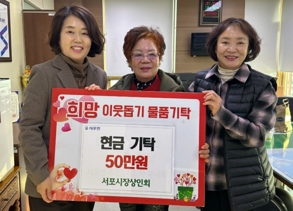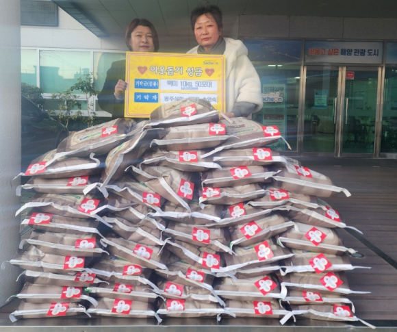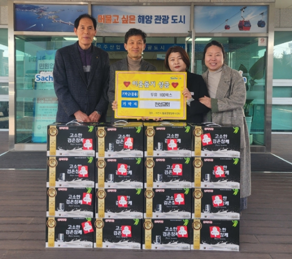 사천시 2025년 새해에도 사랑의 손길 이어져서포면시장상인회, 이웃돕기 성금 50만 원천성교회, 두유 100박스 병주상회 송외숙 대표, 백미 10㎏ 50포 김도형 기자 / |
