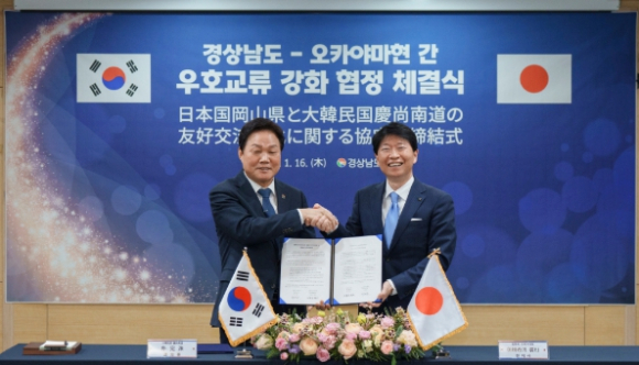- 우호교류 협정 15년차 맞아 16일 오카야마현 대표단 경남 내방 - ‘우호교류 강화 협정’ 체결... 양국 간 문화‧관광 교류 강화키로 - 17일 사천 KAI, 함안 말이산고분군, 부산진해경제자유구역청 등 방문 예정
