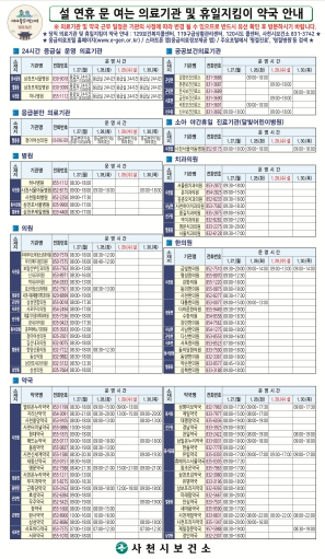 사천지역 의료기관과 약국은 설 연휴에도 운영한다.