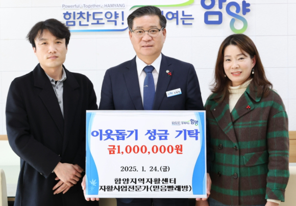 ㈜함양자활기업과 강재호 자활사업전문가, 이웃돕기 성금 기탁함양군 내 취약계층과 위기가정 등 복지 사각지대에 놓인 이웃들이 따뜻한 설 명절을 보낼 수 있도록 사용될 예정김도형 기자 / |