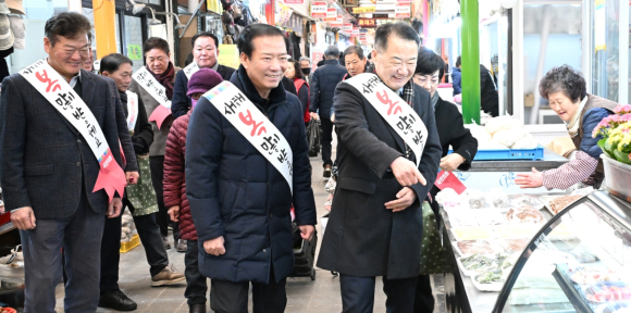 구인모 거창군수‧신성범 국회의원 등, 설 명절 거창전통시장 방문 격려물가점검 ‧ 상인격려, 전통시장 활성화에 앞장한용택 기자 / |