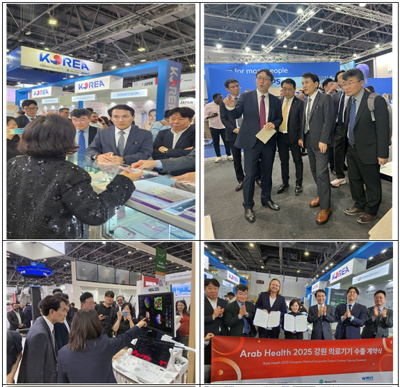 강원특별자치도(도지사 김진태)는 2025년 1월 27일부터 30일까지 아랍에미리트 두바이에서 열린 중동 최대 의료기기 전시회 '아랍헬스 2025'에 참가해 도내 의료기기 기업들의 중동 시장 진출을 본격화했다고 밝혔다.